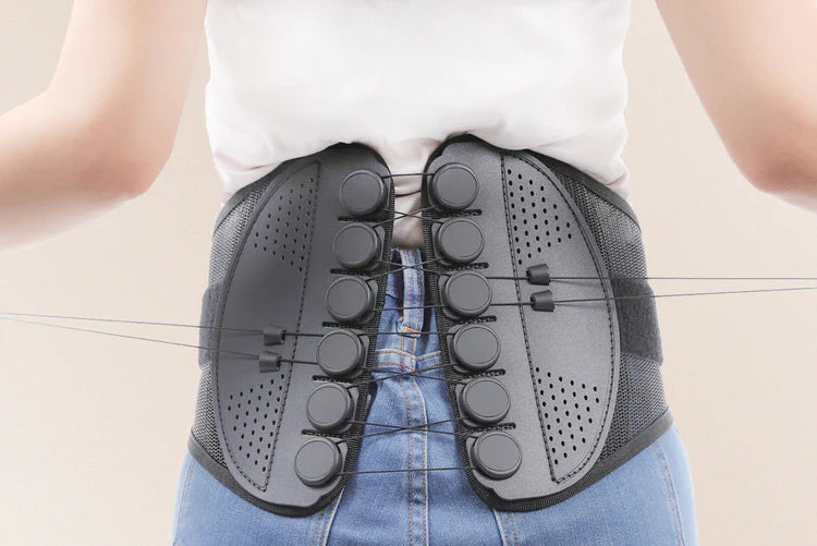 By lifting and securely maintaining the pelvis in proper position, it reduces strain on the lower back and contributes to posture improvement.
